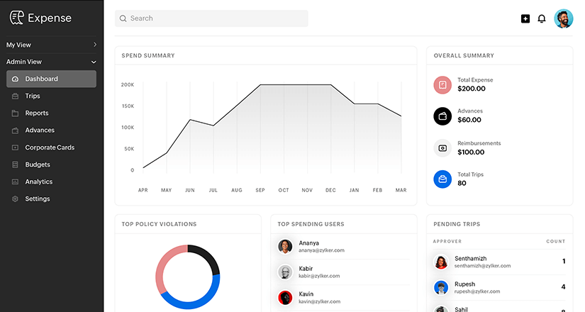 Zoho Expense automates your reimbursement approval flow, making it easy for your employees to claim reimbursements. All of their expenses fall into the right accounts automatically.